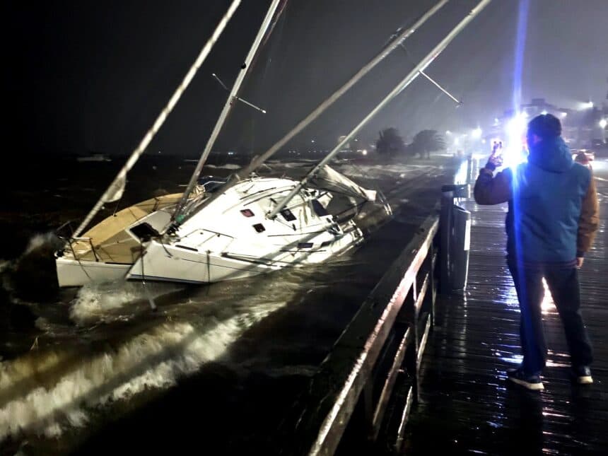 El Chango mira los barcos como si en cada uno viajara un pequeño país. Un país hecho de veranos, de puertos, de travesías y de memoria. Fotografió la embarcación Uruguay Natural, siguió el ritmo de la costa, cubrió la vida náutica y conoció el mar no solo desde la orilla, sino también desde adentro. Por eso, cuando apunta su cámara hacia una nave, no retrata solo una estructura flotando: retrata una forma de vivir, de desplazarse, de habitar el paisaje. Sus barcos cuentan historias. Y entre todas ellas, también aparecen las más dramáticas: las del temporal, las del viento desatado, las de los veleros arrancados de su sitio y empujados hasta la arena, allí donde la rambla y el mar parecen tocarse. Hay temporales que desordenan el mar y otros que, por unas horas, desacomodan también la ciudad. En 2025, uno de esos golpes de viento y oleaje volvió a recordar que Punta del Este vive en diálogo permanente con la naturaleza, aun cuando el paisaje parezca domesticado por la belleza y la costumbre. Las boyas se desprendieron, varias embarcaciones fueron arrastradas y el puerto perdió por momentos esa calma organizada que suele definirlo. Fue entonces cuando ocurrió la imagen más extraña: dos veleros terminaron encallados sobre la arena, tocando la rambla de la península, como si el mar los hubiera empujado hasta el borde mismo de la ciudad. La escena tenía algo de irreal.