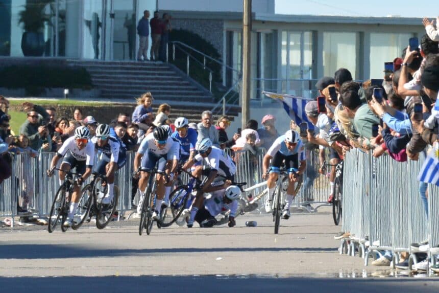 y7Del silencio cargado de historia de Maracaná al vértigo puro del ciclismo: el archivo del Chango Figueredo no se detiene en una época ni en un solo gesto. Su mirada atraviesa generaciones y disciplinas, pero mantiene siempre la misma esencia: capturar ese instante irrepetible donde todo se define. En el reciente Panamericano de ciclismo, Uruguay volvió a acompañar a sus corredores con una entrega silenciosa y firme. Banderas celestes y blancas se mezclaban con la multitud, siguiendo cada curva, cada sprint, cada intento. Fue en ese contexto que ocurrió la caída. Dos ciclistas tocaron ruedas en plena velocidad y, en cuestión de segundos, el pelotón se tensó, se abrió, se desarmó. Pero donde el ojo común ve accidente, la cámara del Chango Figueredo encontró otra cosa: un instante suspendido. Su fotografía captura ese torbellino humano en el suelo, esa coreografía involuntaria donde cuerpos, bicicletas y colores se entrelazan. No hay exageración: hay precisión. Hay verdad. Y hay, sobre todo, una mirada que transforma el caos en memoria.