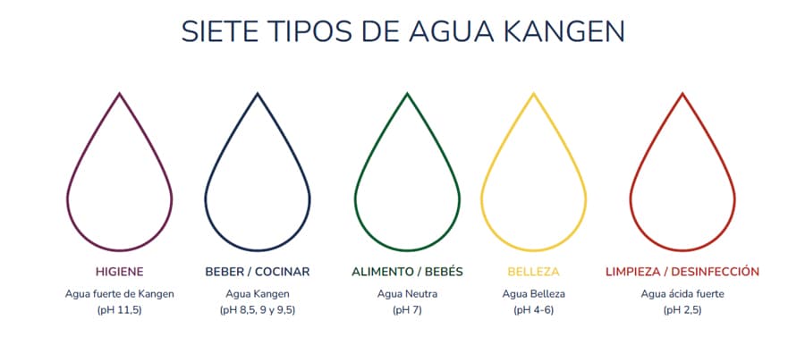 El agua Kangen ofrece siete tipos diferentes adaptados a diversas necesidades, desde el cuidado de la salud hasta la limpieza y la belleza. Con ella puedes: