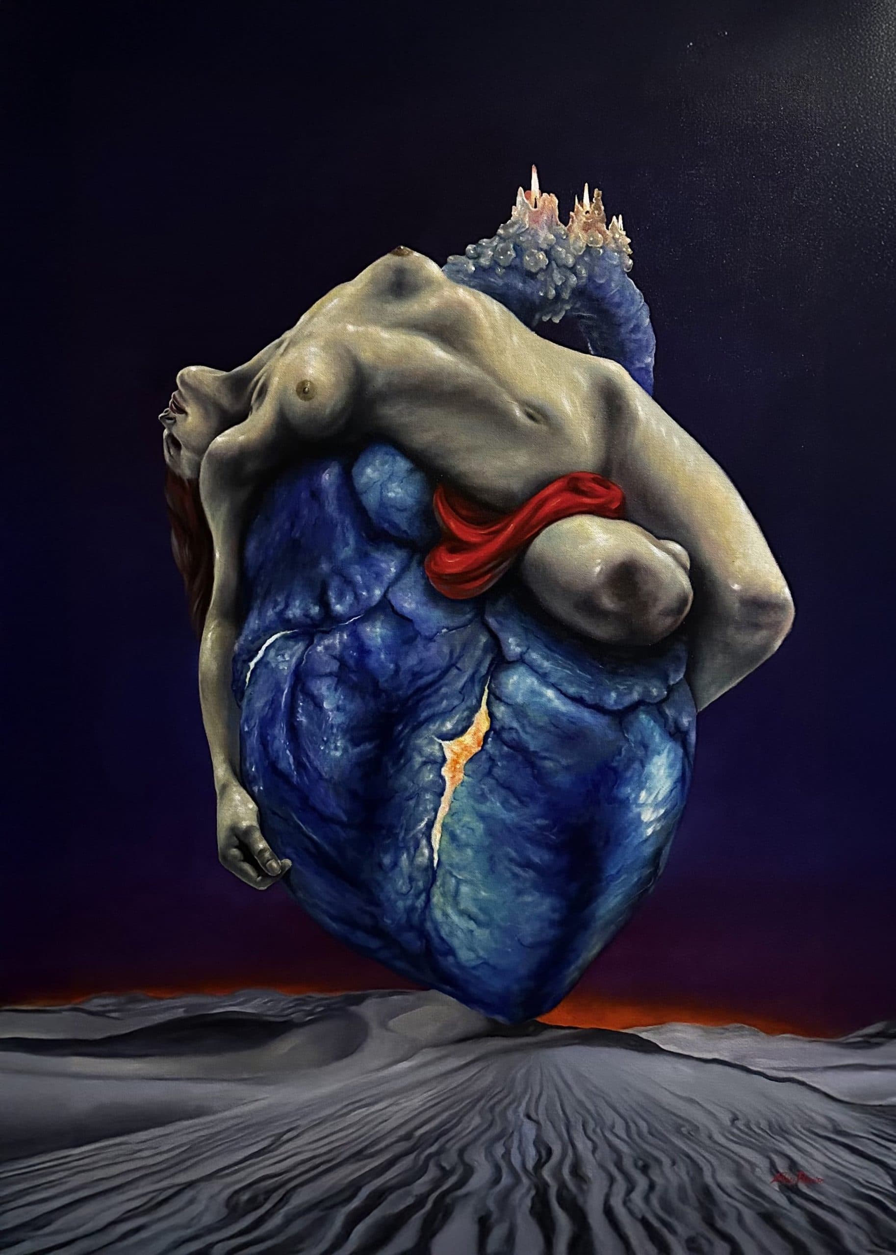 La figura central, en un contexto indefinido, simboliza dolor y resiliencia. Pereira logra trascender lo visual, consolidándose como un destacado exponente del hiperrealismo contemporáneo.