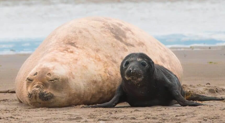 En Piriápolis nació una cría de elefante marino del sur, algo nunca antes documentado en las costas uruguayas. La mamá y su cría están protegidas por un cerco que colocó Prefectura, para evitar que el ajetreo de la playa los altere. Durante este delicado momento, la madre hace lactancia exclusiva por unos 25 días, apenas sale al agua para vigilar, y su cría crece muy rápido.
