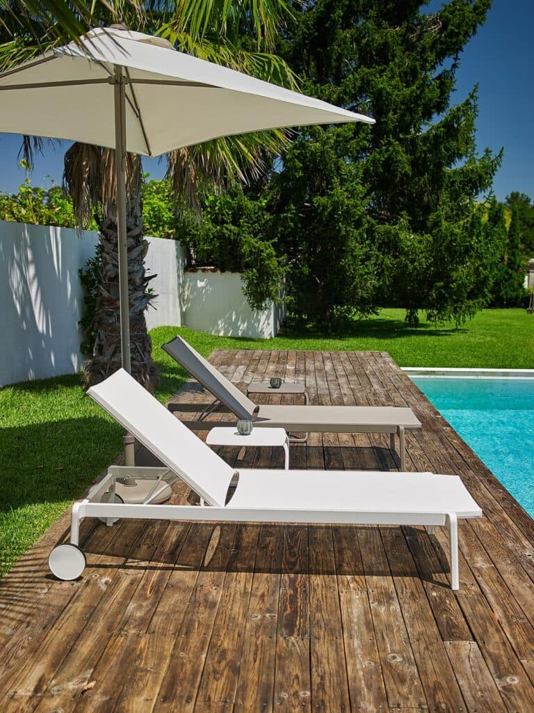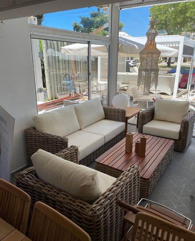La propuesta se apoya en la representación de marcas internacionales reconocidas por su diseño y durabilidad —Ezpeleta, Balliu, Jardinico, Joenfa, Tilia y Skyline Design—, con productos que equilibran líneas clásicas y contemporáneas, materiales nobles y una cuidada terminación. Maderas como teca y caoba, estructuras de aluminio, telas con protección UPF 50+ y reposeras de resina de polipropileno con tornillería de acero inoxidable aseguran una larga vida útil y un excelente comportamiento en exteriores exigentes.