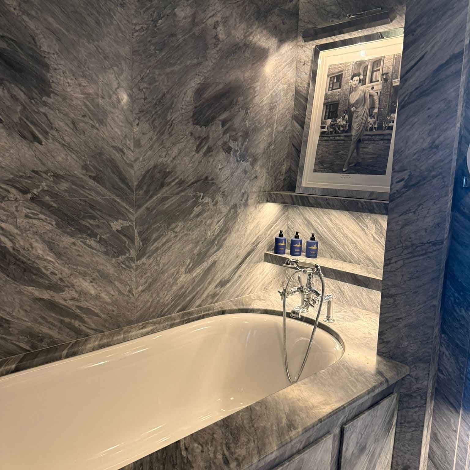 Picaportes con tacto de cuero, baños de mármol, maderas finas, herrajes silenciosos. En pocos metros, el pasaje de la materia cruda a las terminaciones definió la lógica del proyecto: el lujo, en versión Cipriani, no se impone con brillo; se instala con oficio, con exactitud, con esa elegancia que se nota porque no necesita alzar la voz.