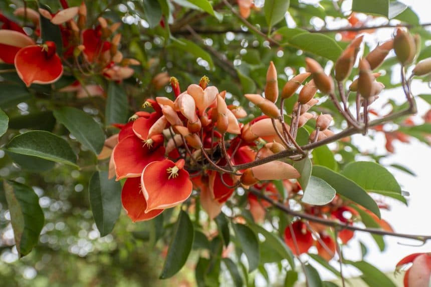 El diseño incluye senderos, cascadas, puentes y estanques, con una variedad de especies autóctonas y exóticas, así como piedras locales.