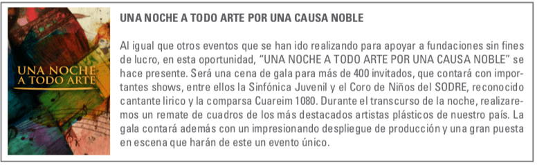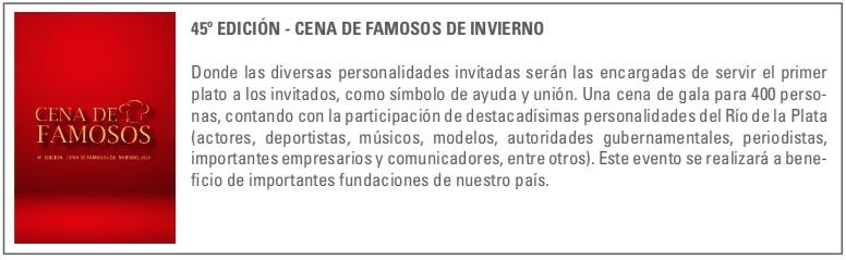 Entre sus eventos anuales, no destaca ninguno en particular, tratando a todos con igual pasión y dedicación. Eventos como «La Cena de Famosos» (Ver además: Herrera Producciones: otra nueva edición de la cena Montevideana más famosa del año) y «La Mujer del Año» se han convertido en clásicos en Uruguay, debido a su permanencia y al reconocimiento que brindan a contribuciones significativas en distintos ámbitos.