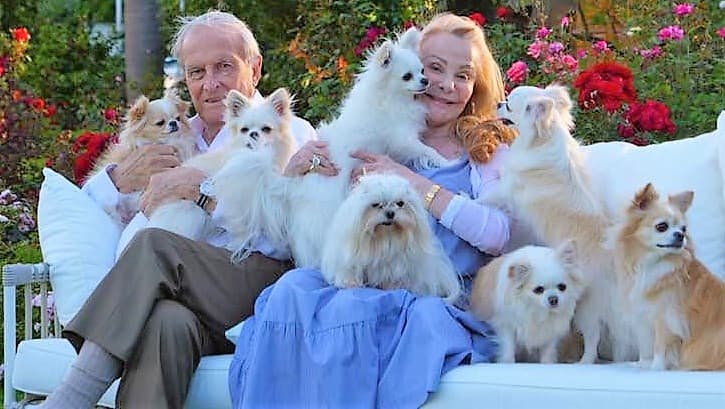 La Princesa junto a su actual esposo John Aston y a su custodia personal, los innumerables perros que tiene la pareja. Una manada de amor y cariño incondicional.
