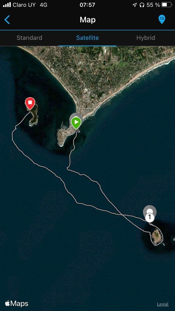 «Salimos 5am navegando a ciegas totalmente por la intensa bruma. Nos guiábamos con el ruido de las olas y de la ciudad que íbamos dejando atrás nuestro. Luego por un periodo no escuchábamos más la ciudad y nos guiamos con el claro de luz que eventualmente se convirtió en el sol en el horizonte. Yo sabia por experiencia que había que “follow the sun” para llegar a Lobos».