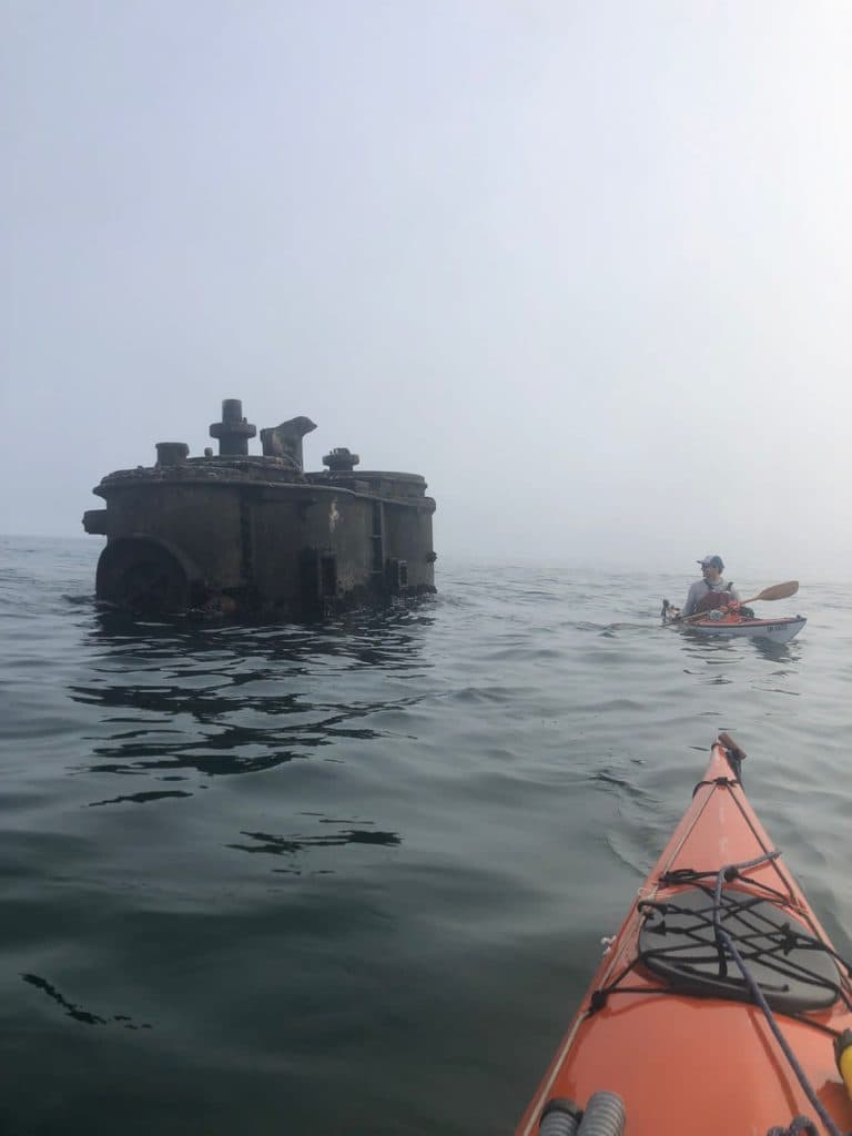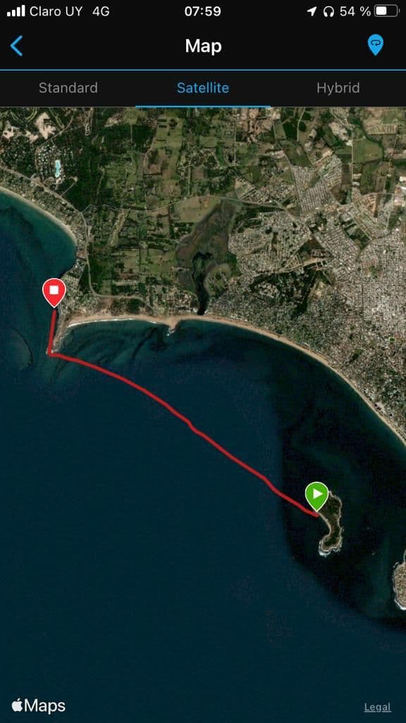 «Eventualmente empezaron los sonidos de los Lobos y eso nos marcó el rumbo a la isla, hasta que de repente apareció el faro bien arriba y a 50 mts la isla, como una isla fantasma. Le dimos la vuelta y finalmente descansamos en el barco hundido, sobre la chimenea del barco “Ciudad de Santander”».